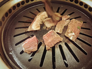 店員會先把牛排骨攤開剪碎,再放上烤鍋中再煎,肉色有些小疵的豬肝褐色,總不能太說是醃製之故,稍稍美中不足,但放入口的口感,在牙齒中嘴嚼的味道還是如以往的甜,肉質亦鎖得緊,不愧聞名。